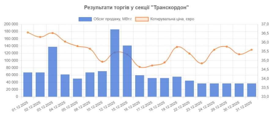 Минулого місяця були укладені угоди в секції «Транскордон» на умовах постачання у точці на кордоні. Загальний обсяг за вказаними угодами склав 1,3 млн MBт.г. за цінами в діапазоні 34,65-36,55 євро.