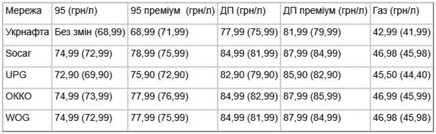 Цена на бензин повысилась на 1 грн/л на ОККО, на 2 грн/л на WOG, на 3 грн/л на Socar и UPG, но у последней остается самой низкой среди частных сетей. При этом государственная «Укрнафта» оставила без изменений цену на А-95 и снизила на 3 грн/л цену на А-95+. На оба вида топлива она составляет 68,99 грн/л.