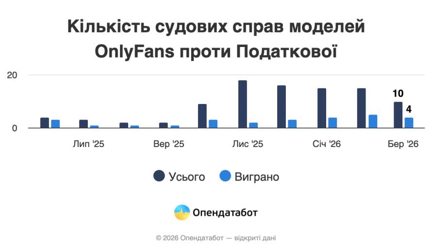 Кількість судових рішень на користь авторів контенту OnlyFans, які оскаржують штрафи та донарахування від Податкової стрімко зростає за даними пошуковика по судових рішеннях "Бабуся". Щонайменше 27 справ завершилися повністю або частково на користь позивачів. Це майже третина від 94 випадків, де моделі намагалися відстояти свої права.